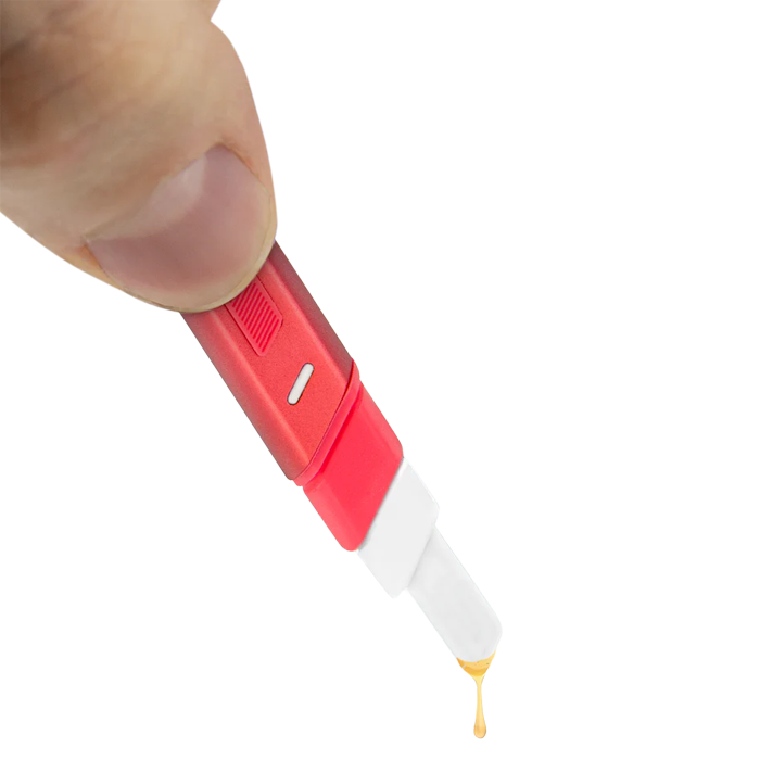 Say goodbye to stickiness. The Hot Knife is a USB-C chargeable loading tool with a ceramic tip that heats at the push of a button. No more dirty dab tools, sticky fingers, or clothes fuzz in your bowl – just hold down the button and watch your extract drop off in 3 seconds.