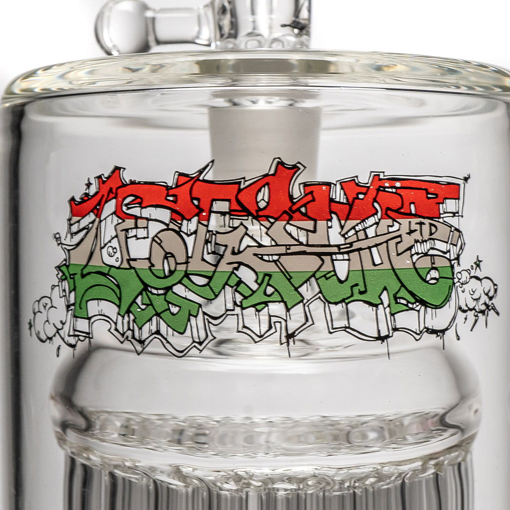 Leisure - 54 Arm Bubbler - Red, White & Green Graffiti Label